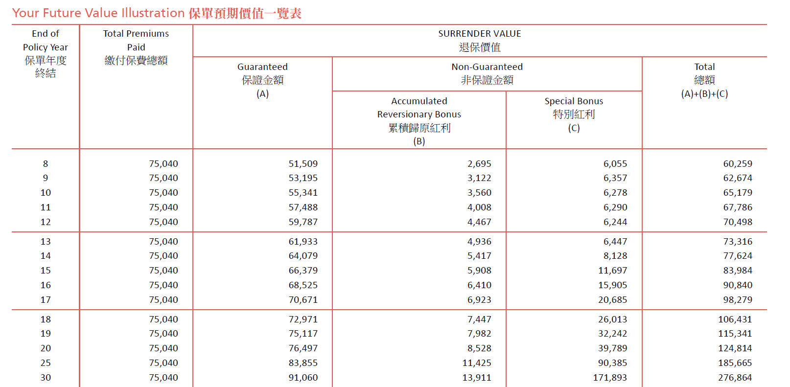 根据当时保单计划书里的预期金额,我们要参考的是第8行: