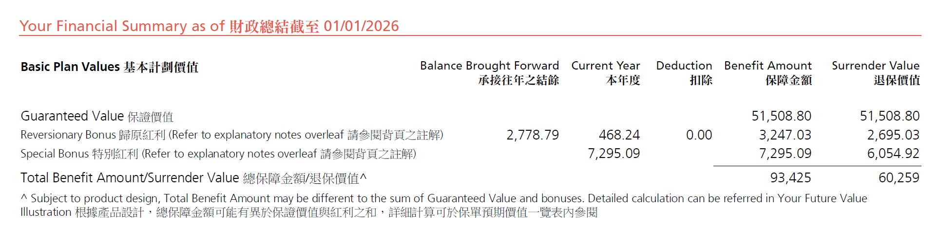 总共退保价值60,259美元。