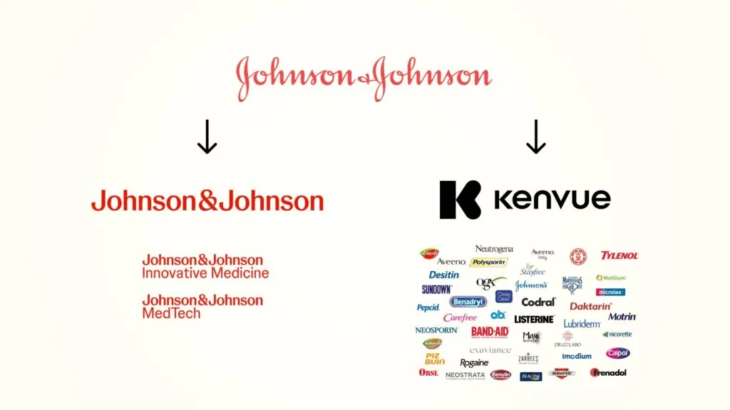 强生把旗下的消费者健康产品业务(也就是婴儿洗发水、创可贴、泰诺止痛药、李施德林漱口水这些日常消费品)单独剥离出来,成立了一家新的独立上市公司,叫做Kenvue(中文常译为"科赐美")。分拆完成后,强生本体专注于制药和医疗器械两大业务,而Kenvue则成为独立运营的消费者健康公司。