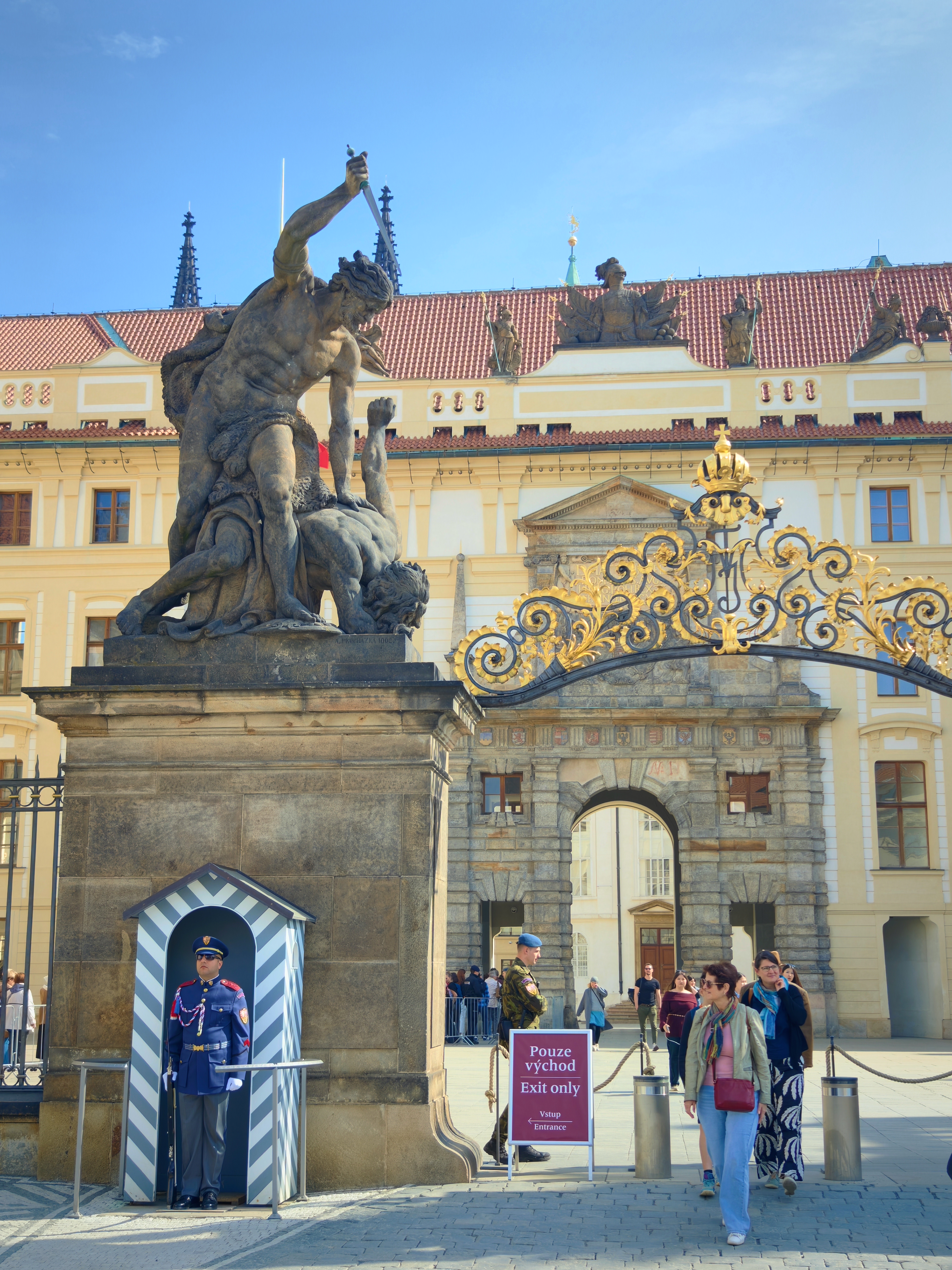 盘踞在伏尔塔瓦河左岸的山丘上,整片建筑群绵延将近七万平方米,一眼望过去,哥特式的尖顶挨着巴洛克的穹顶,罗马式的厚墙连着文艺复兴的拱廊。说它是一座城堡,不太准确——它更像一整条街区被时间缝在了一起。