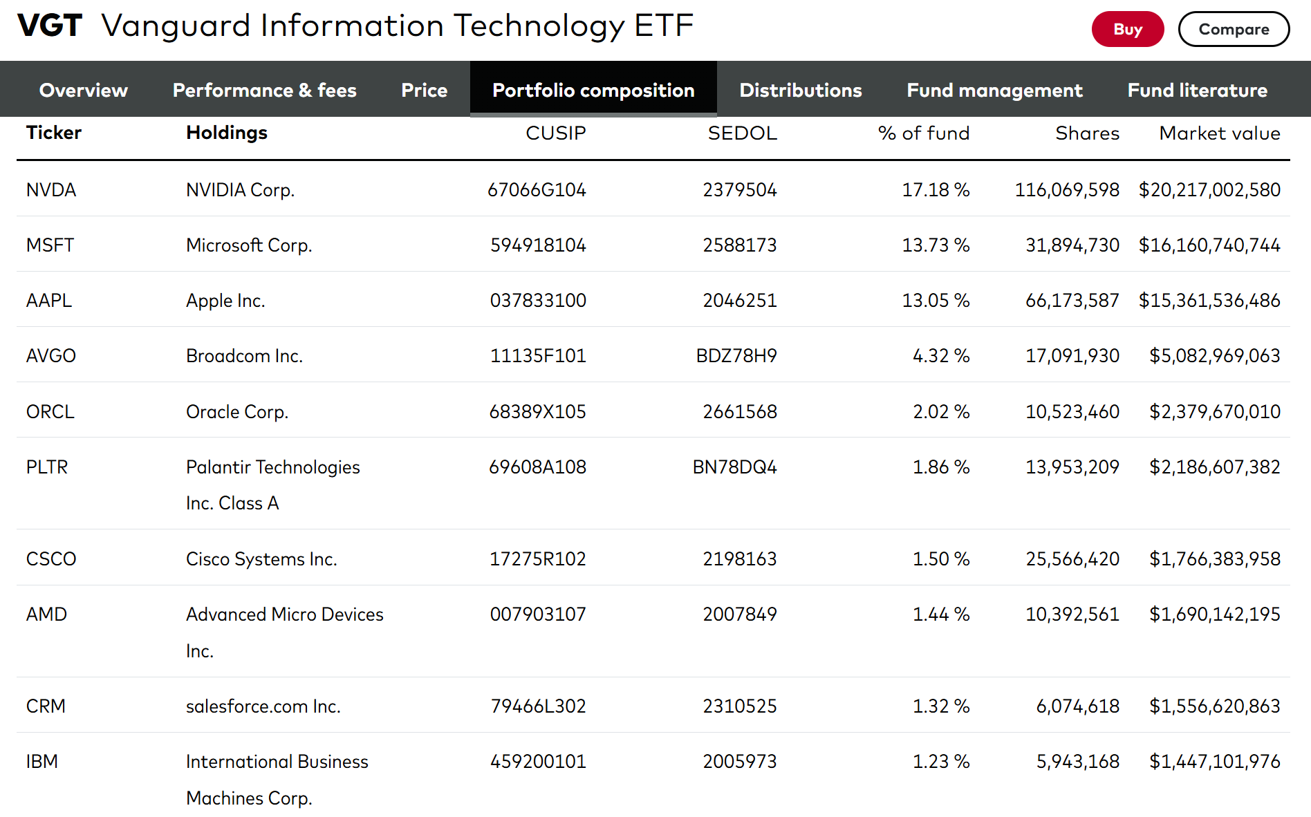 这轮科技的发展,是由AI驱动的。以纳指100或者VGT科技ETF为例,基本上十大龙头基本上都和AI有关。