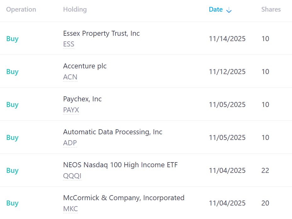 其中QQQI的买入是替代DGI操作中的EPD,因为他是一个Master Limited Partnership,对于我们非美国投资者的税务处理较复杂,因此我选择用QQQI去替代。