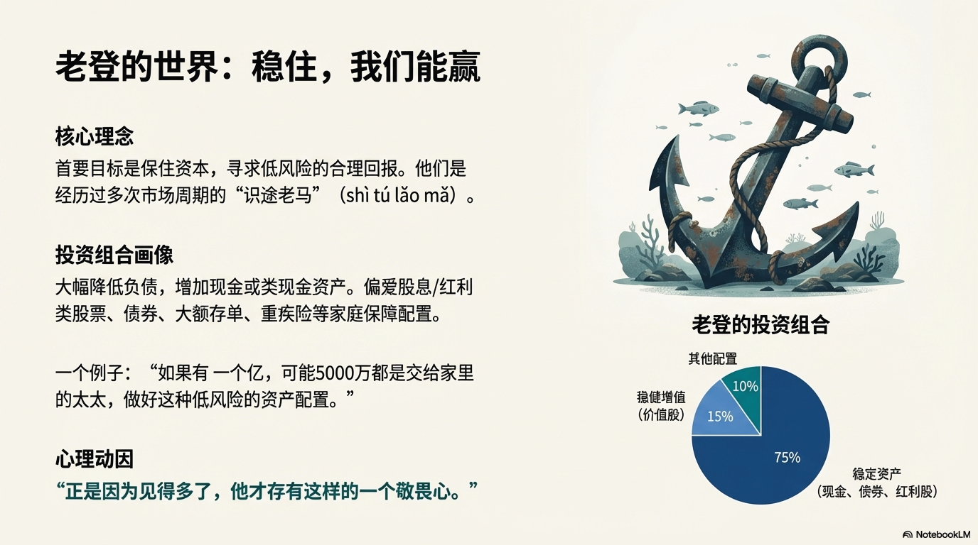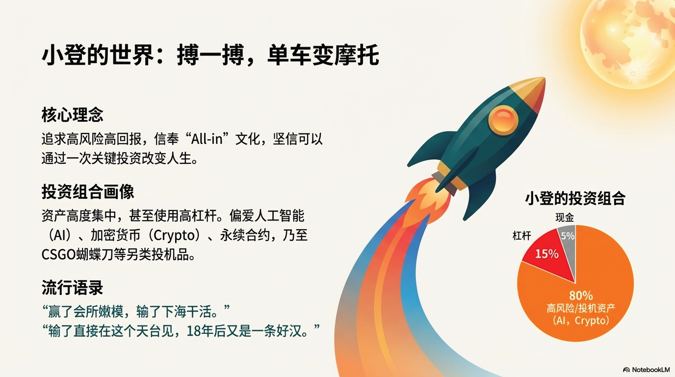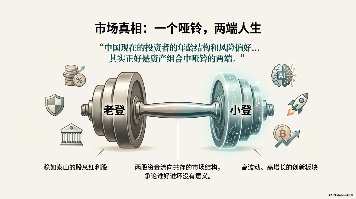 老登和小登的组合本身就是一种很巧妙的搭配:父母可能追求的是地基的稳定(低风险储蓄和保险),而子女则追求楼层的高度(高风险创新资产)。两者并非对立,而是构成了家庭(或市场)资产配置的完整结构。