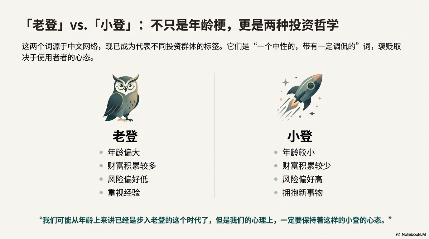 前些天听了付鹏一个分享,提到“老登”和“小登”的概念,说是在投资圈最近很火。